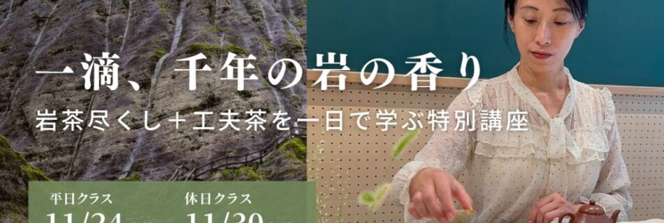 一滴、千年の岩の香り 〜10種の岩茶 × 潮州工夫茶(カンフチャ)〜 香りで岩を知り、所作で茶を学ぶ|1日完結・中国茶講座(初心者歓迎) 「岩茶(がんちゃ)」をご存知ですか? 中国茶の最高峰ともいわれる岩茶は、福建省・武 …